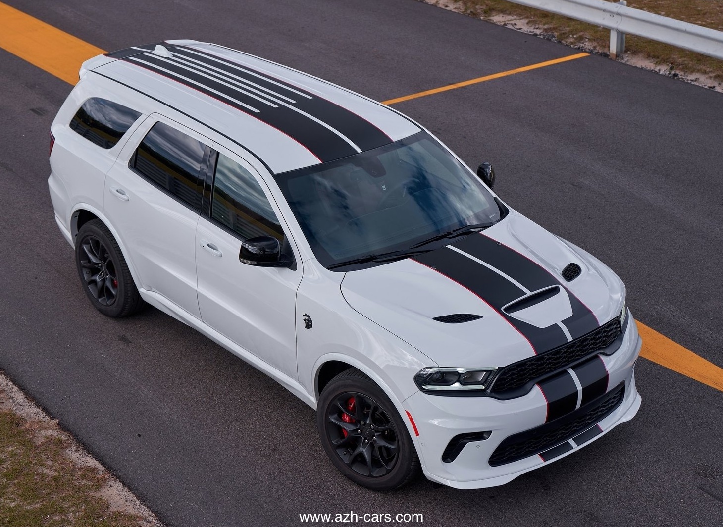 Dual-middle outdoors stripes, to be had on Durango GT, R/T, SRT 392 and SRT Hellcat fashions, also are to be had protecting the the front and rear fascias, hood, quantities of the roof, spoiler and the tailgate. Stripes are provided in 5 colours: black with Redline accessory tracer, Bright Blue, Flame Red, Gunmetal Low Gloss (steel end) and Sterling Silver (steel end).